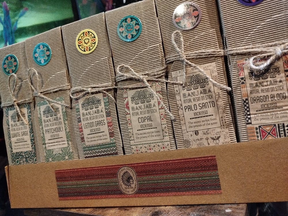 These gorgeous ritual incense sticks come beautiful packaged. They contain 8 thick hand rolled sticks that are full of natural resins and herbs.